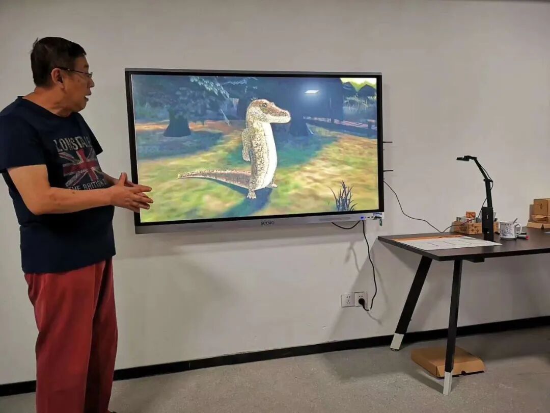 “几张卡片轻轻放置,翻转间活灵活现的一只青蛙跃然而出,并伴随着呱呱呱的叫声!”老师们正在杨教授的指导下进行实操演练,这就是奇诺双语幼儿园引进的美国最新AR技术,包含了多媒体三维建模、场景融合等技术与手段,其形声色带来的感官冲击能够极大激发幼儿学习兴趣。为了让高科技新手段能够充分发挥效能,老师们一个一个动作练、一个一个发音学,确保让幼儿学到最精准、最纯正的英语。